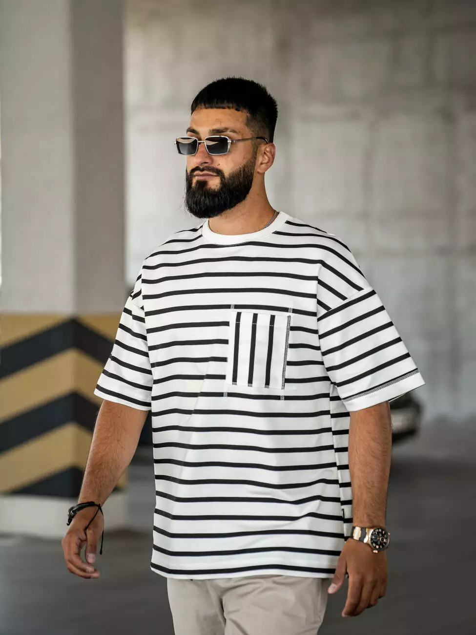 Мужская футболка в полоску, свободного кроя Оверсайз. Стилизована