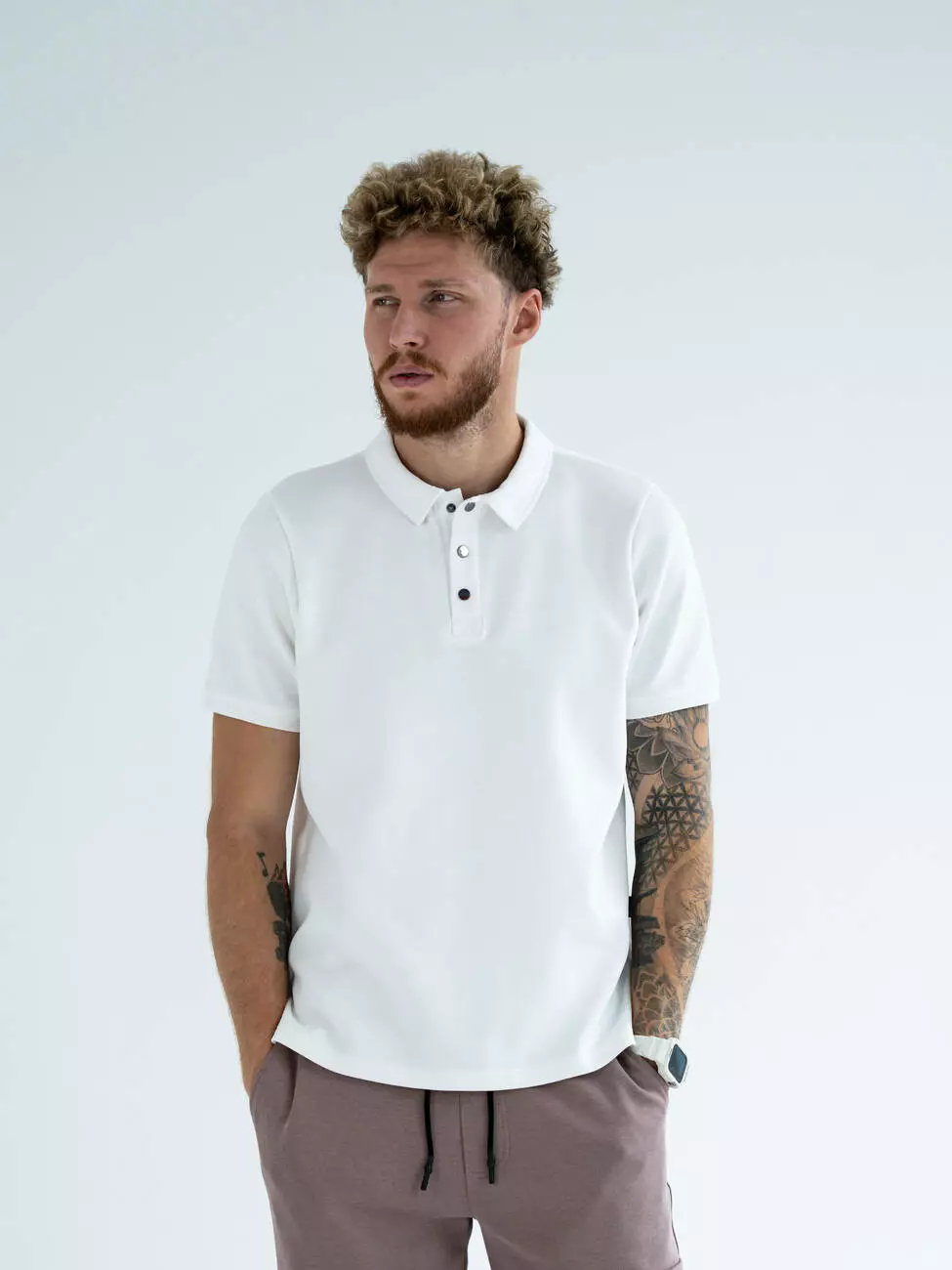 Мужская однотонная футболка поло с эластичным манжетом в рубчик.