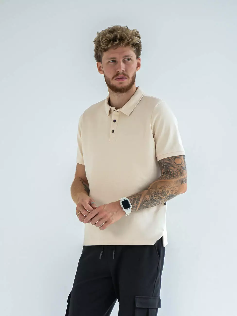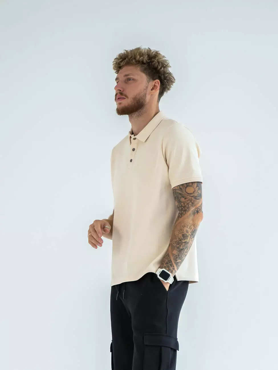 Мужская однотонная футболка поло с эластичным манжетом в рубчик.