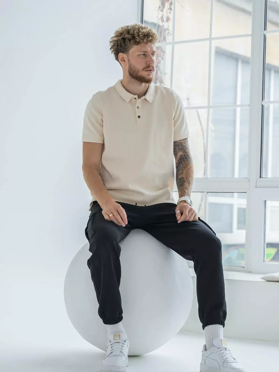 Мужская однотонная футболка поло с эластичным манжетом в рубчик.