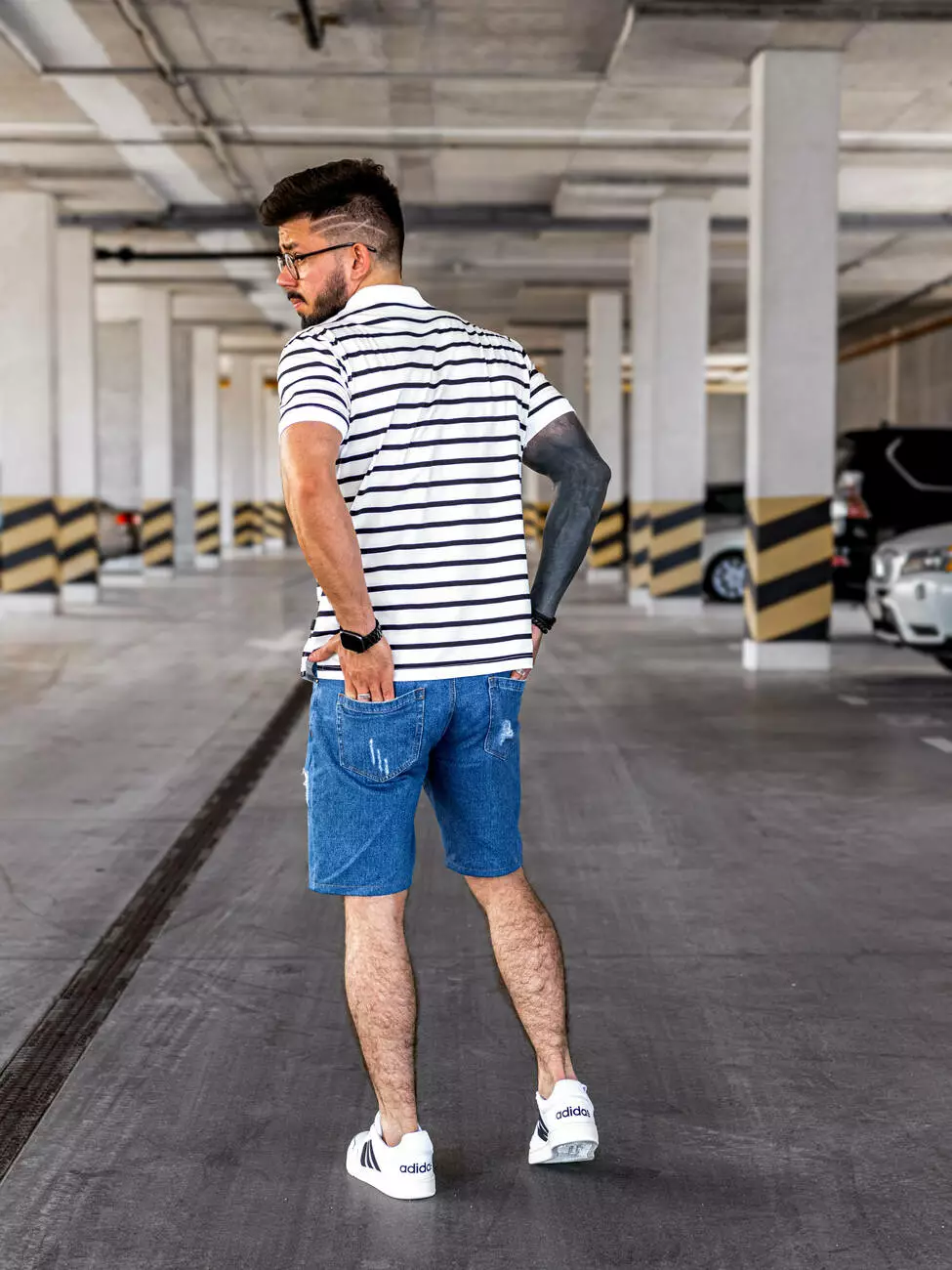 Мужская повседневная футболка поло в чёрную полоску, которую легко