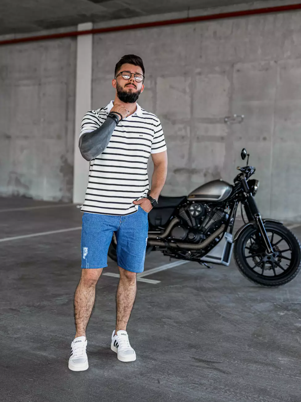 Мужская повседневная футболка поло в чёрную полоску, которую легко