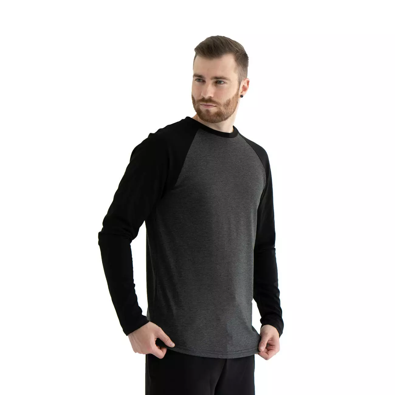 Двухцветный лонгслив свободного кроя реглан из легкой ткани.