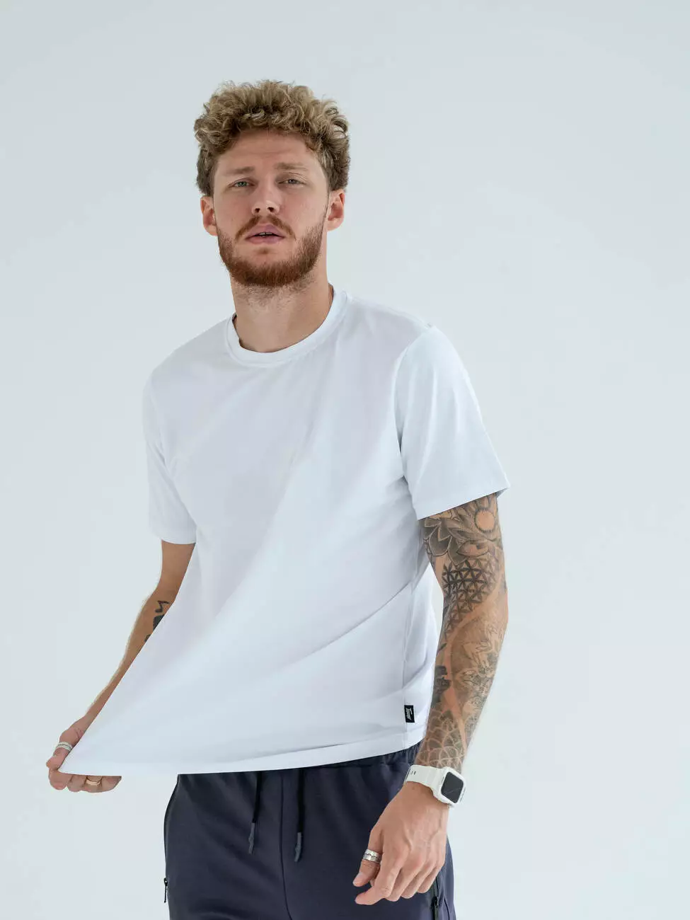 Мужская базовая однотонная футболка прямого кроя. Эластичный