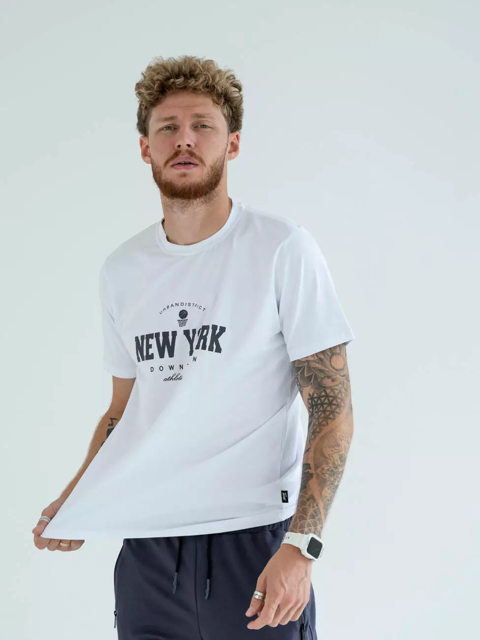 Мужская базовая футболка прямого кроя с принтом. Эластичный