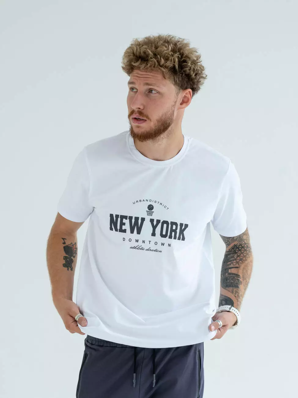 Мужская базовая футболка прямого кроя с принтом. Эластичный