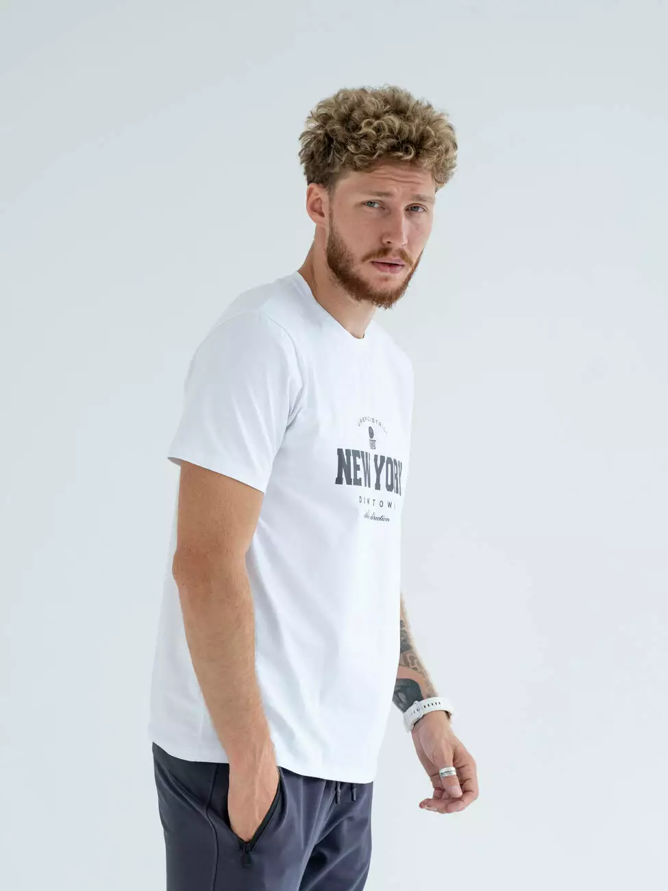 Мужская базовая футболка прямого кроя с принтом. Эластичный