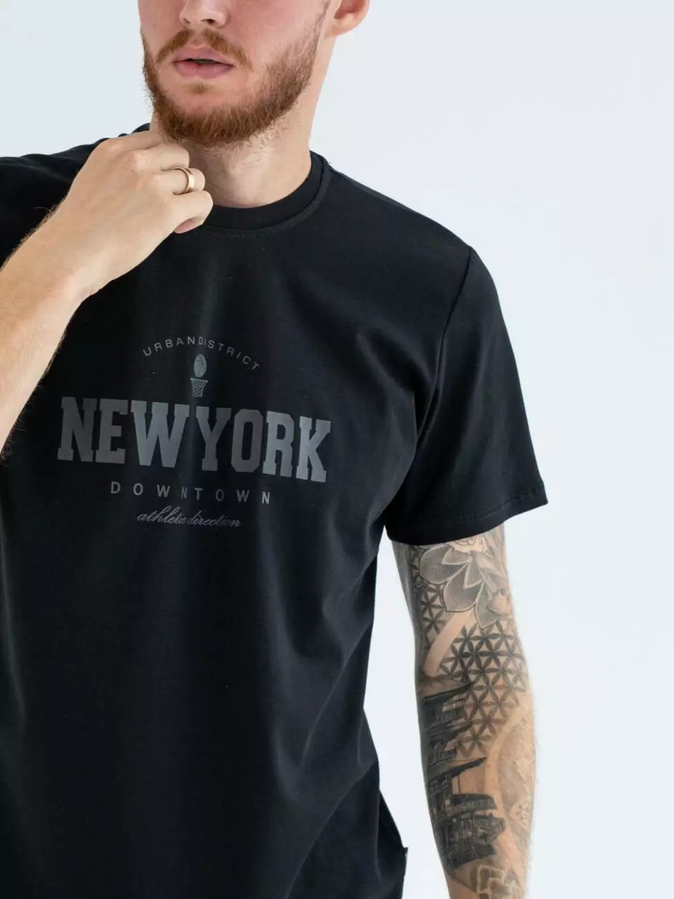 Мужская базовая футболка прямого кроя с принтом. Эластичный