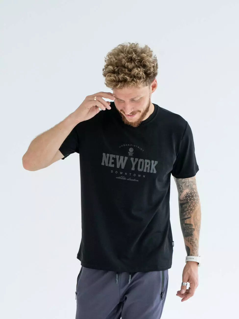 Мужская базовая футболка прямого кроя с принтом. Эластичный