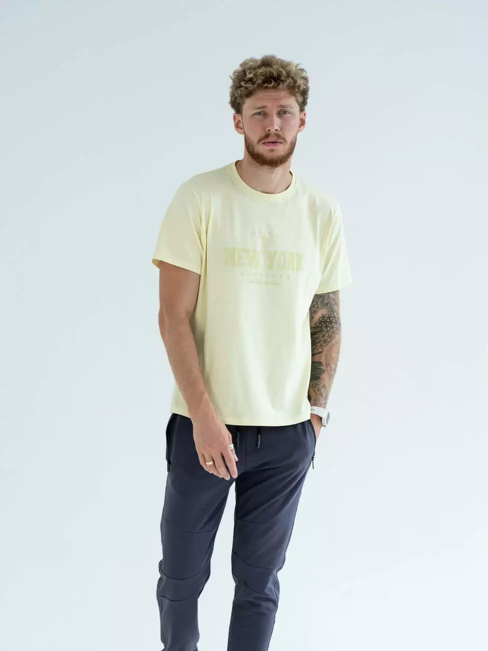 Мужская базовая футболка прямого кроя с принтом. Эластичный