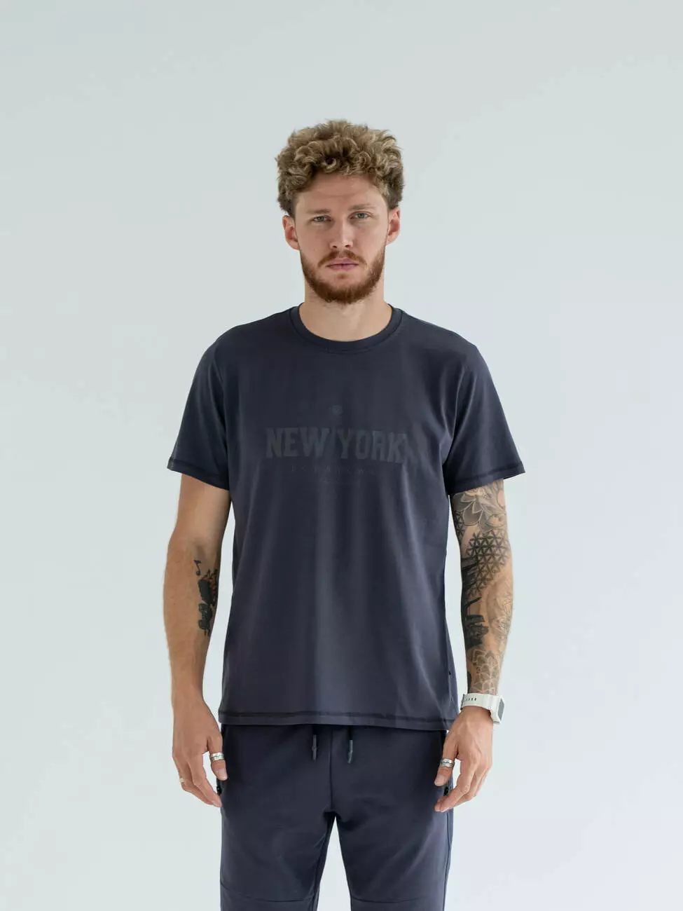 Мужская базовая футболка прямого кроя с принтом. Эластичный
