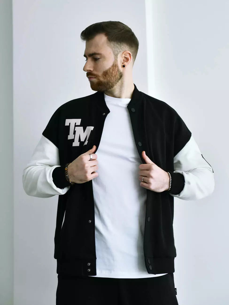 Мужская кофта бомбер с контрастными рукавами и брендированными