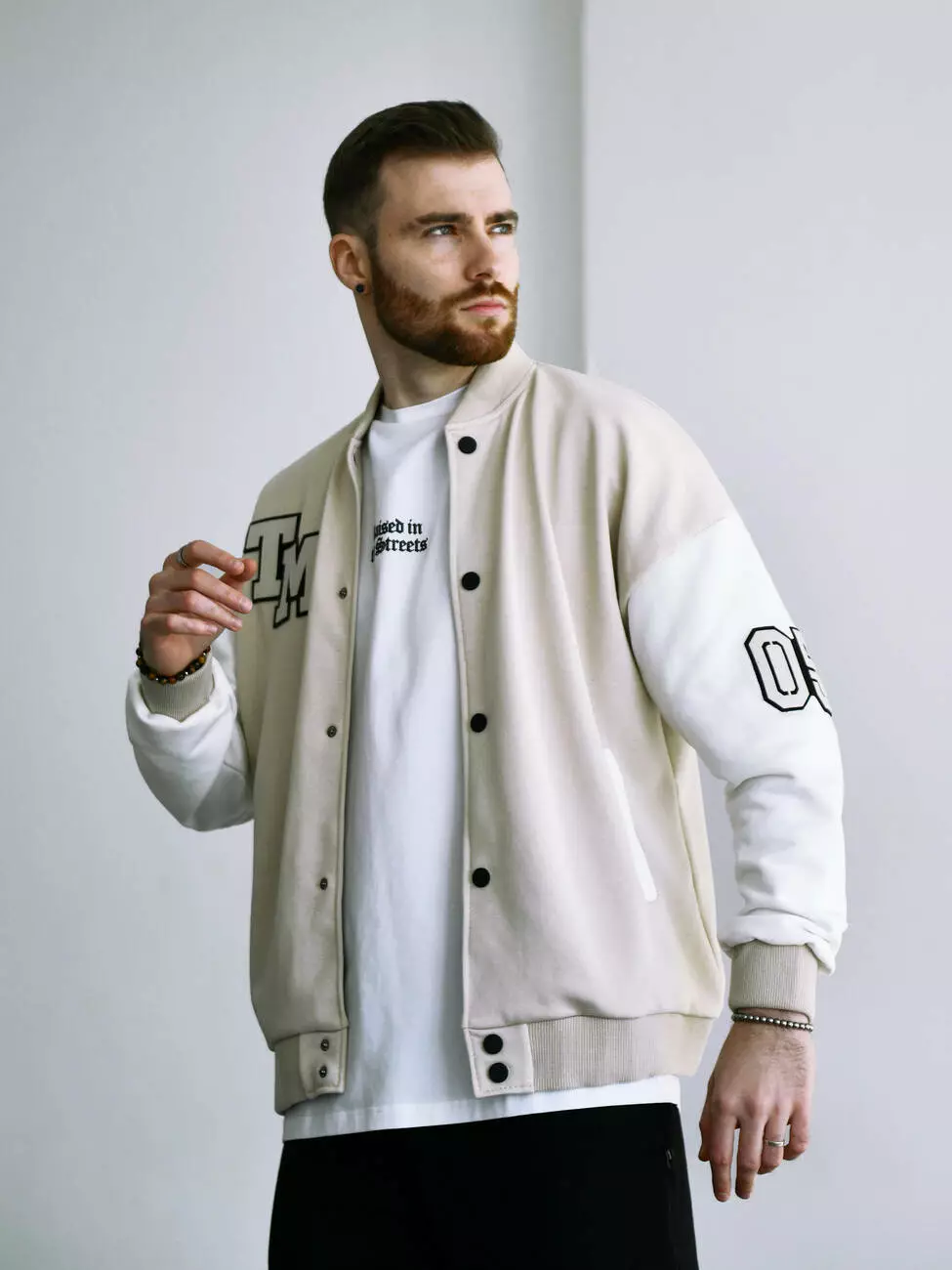 Мужская кофта бомбер с контрастными рукавами и брендированными