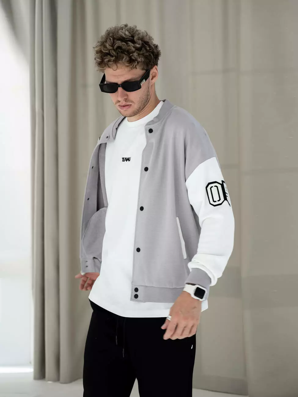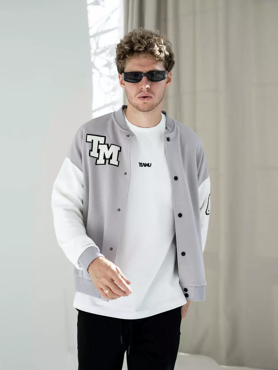 Мужская кофта бомбер с контрастными рукавами и брендированными