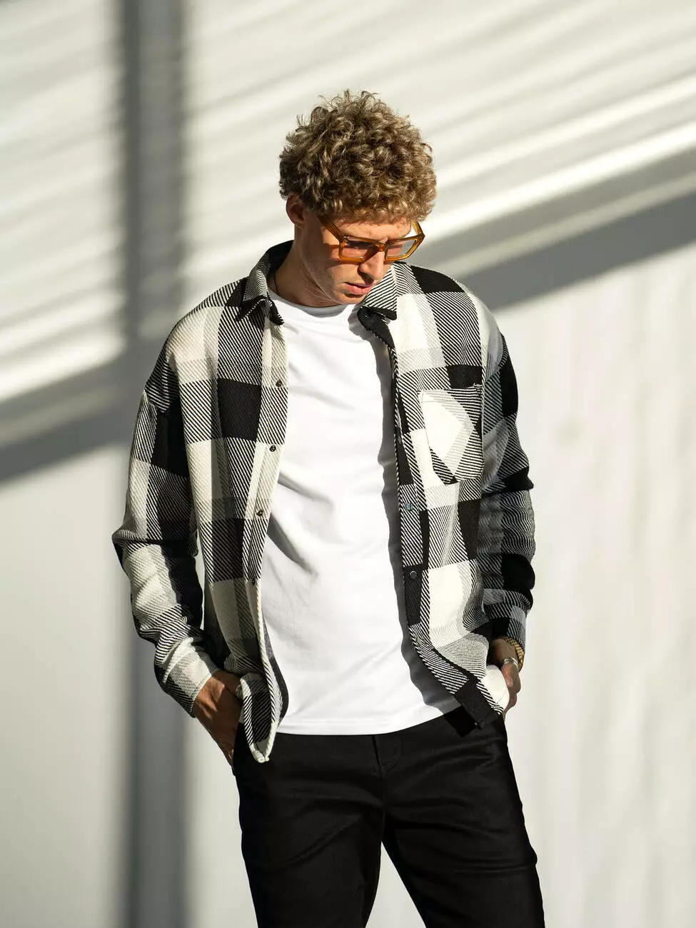 Мужская кашемировая рубашка в клетку свободного кроя. Стильный