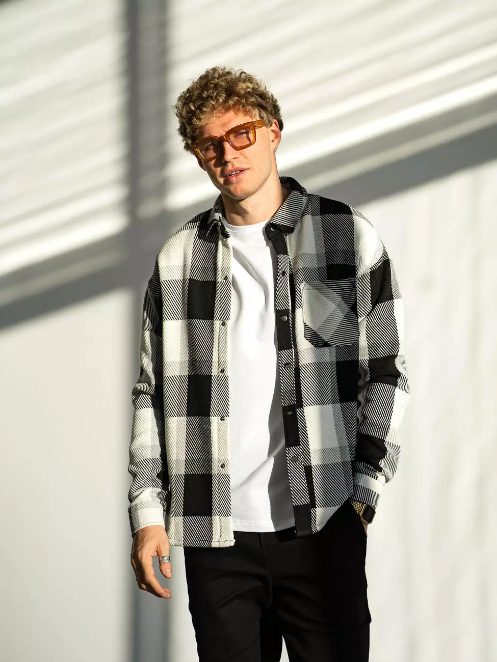 Мужская кашемировая рубашка в клетку свободного кроя. Стильный