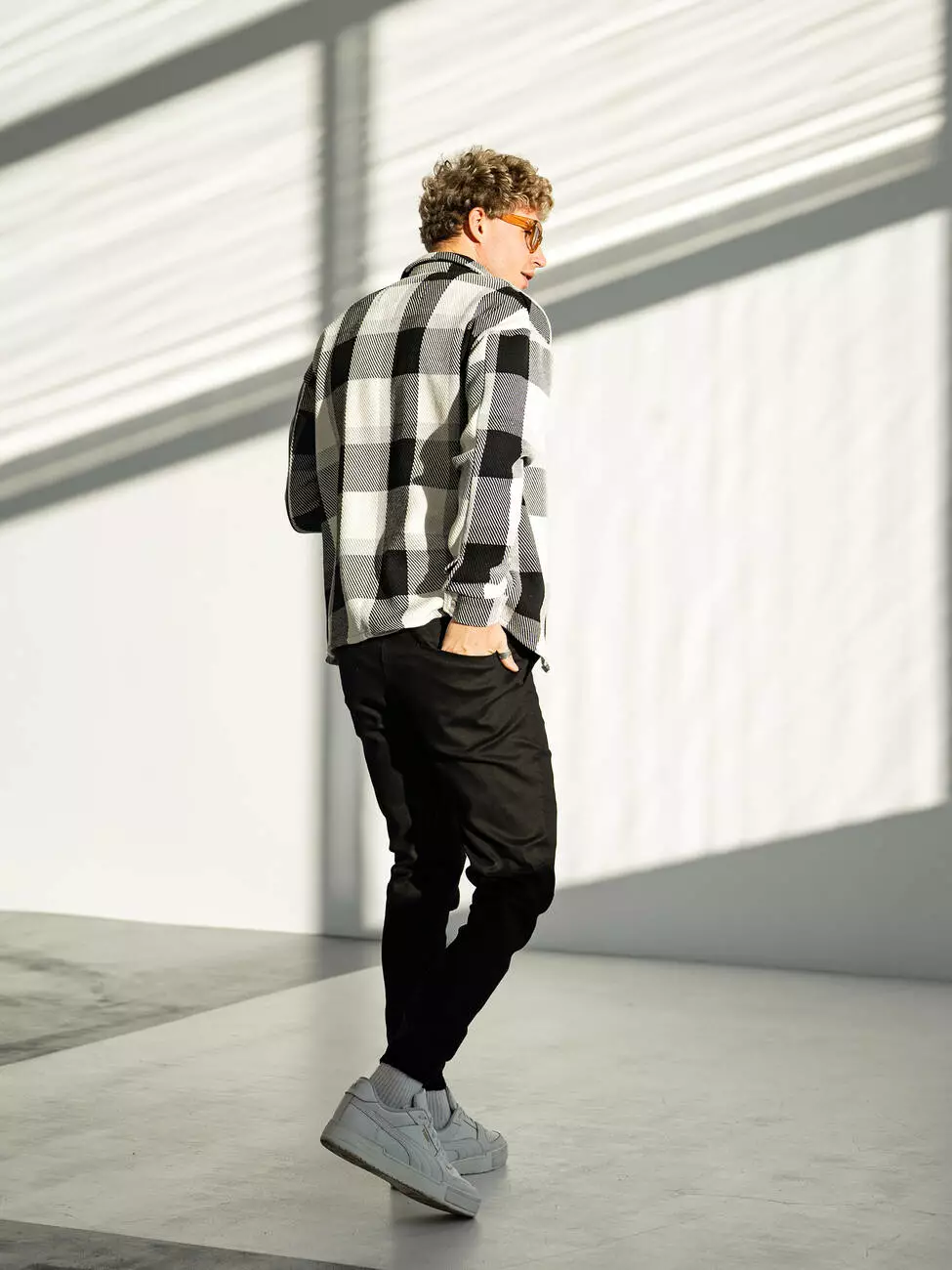 Мужская кашемировая рубашка в клетку свободного кроя. Стильный