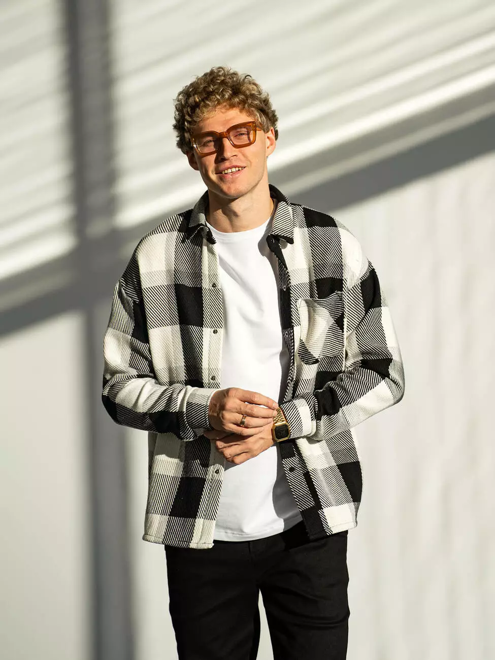 Мужская кашемировая рубашка в клетку свободного кроя. Стильный