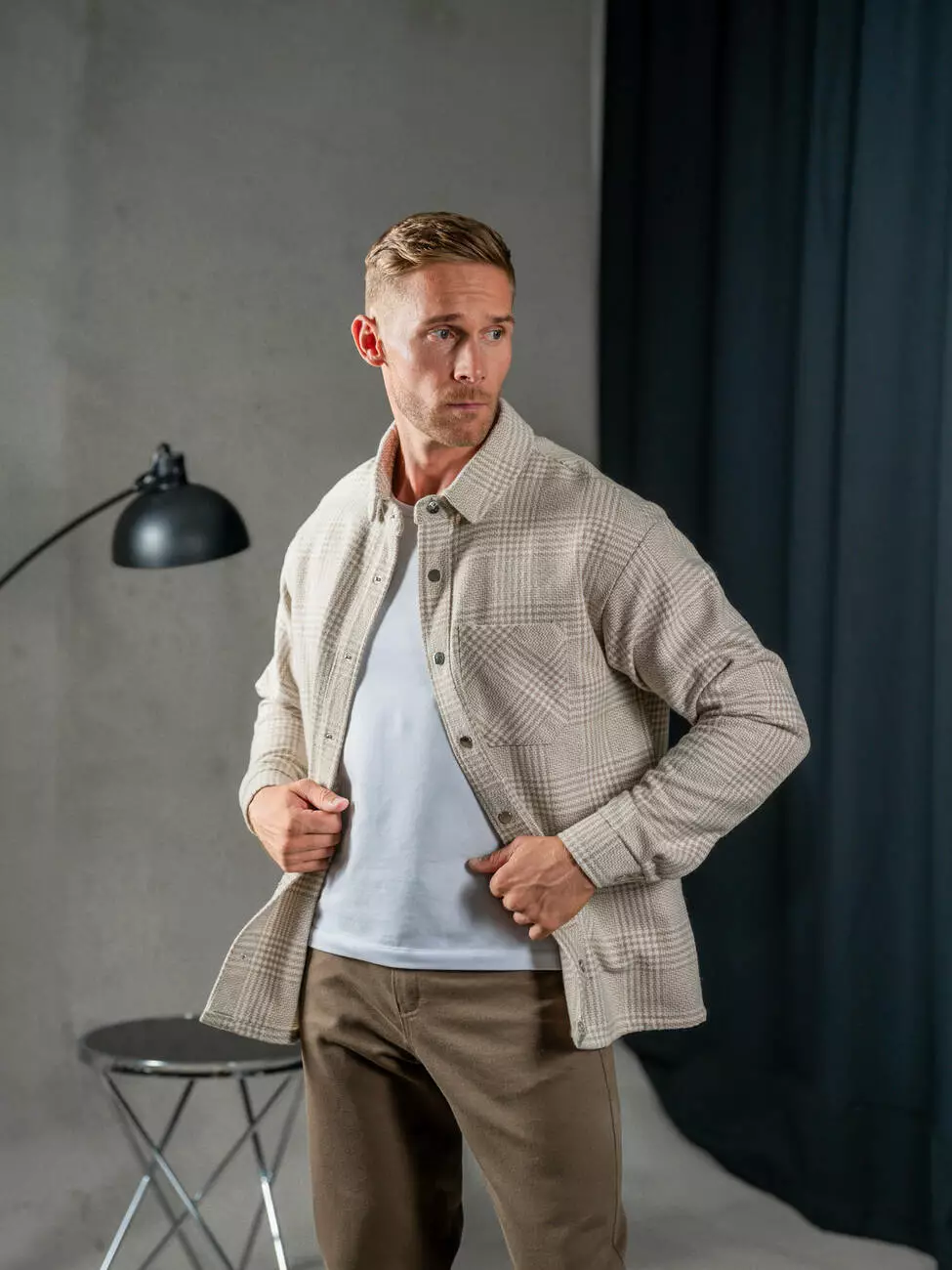 Мужская теплая рубашка в клетку на кнопках. Рубашка свободного кроя