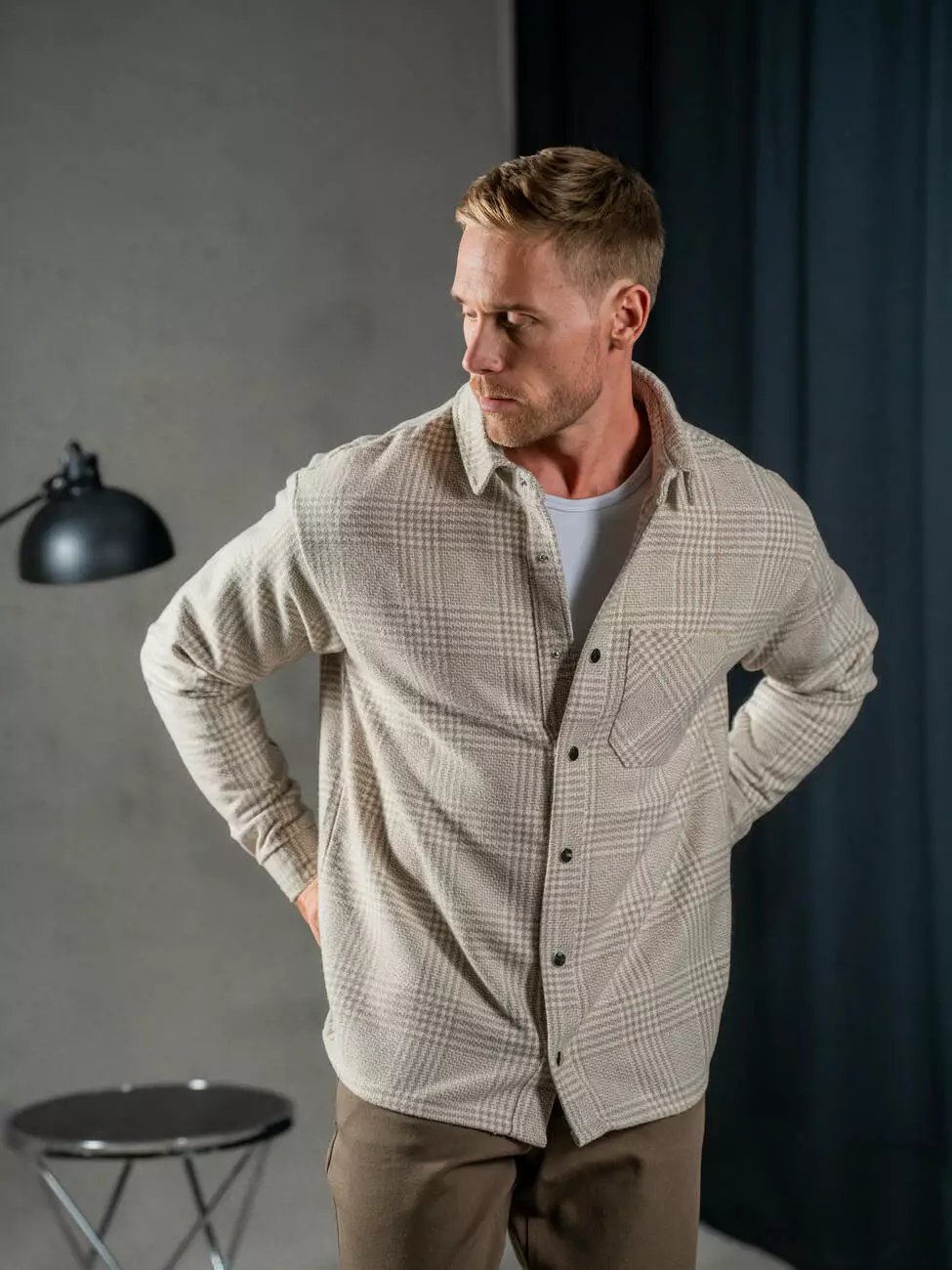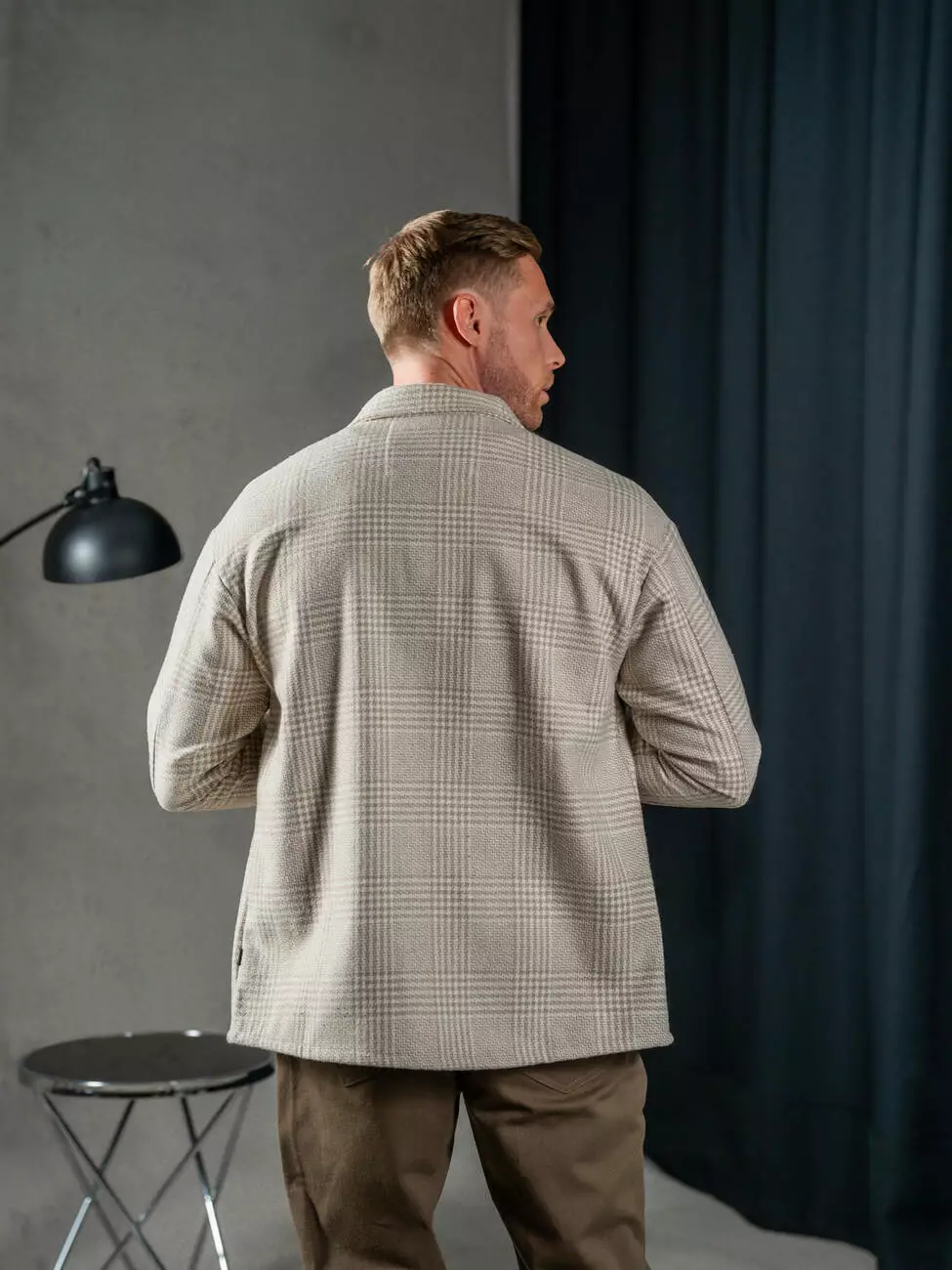 Мужская теплая рубашка в клетку на кнопках. Рубашка свободного кроя