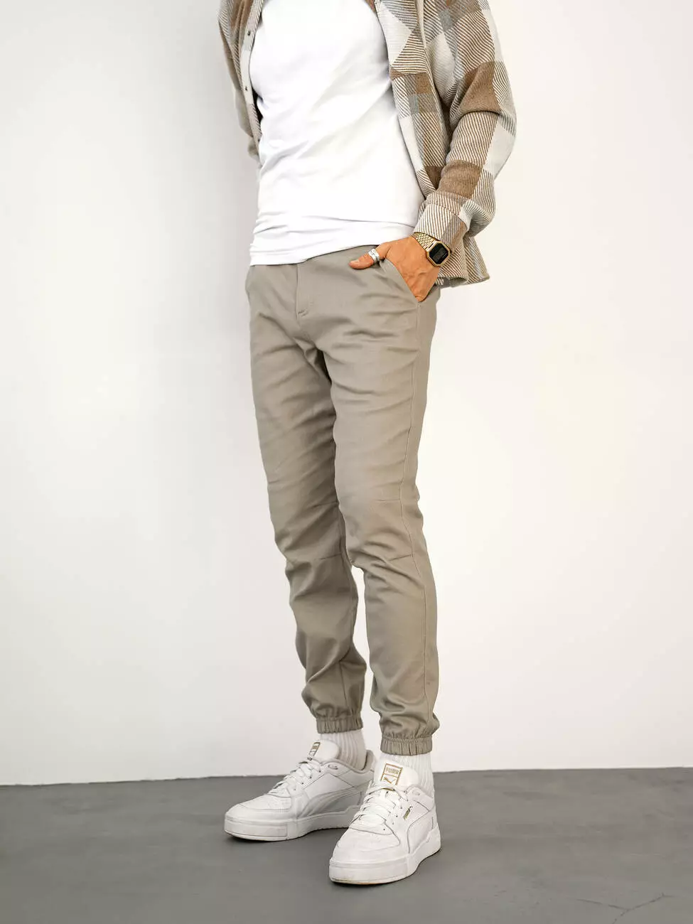 Мужские стильные джоггеры из котона, зауженные к низу на резинке.