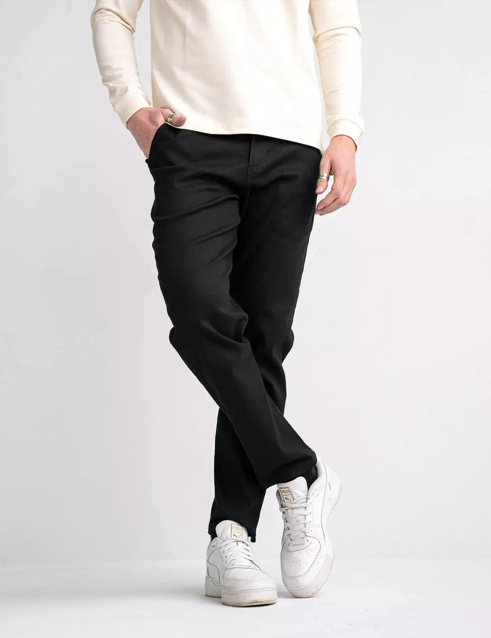Мужские классические брюки из эластичного коттона с поясом на