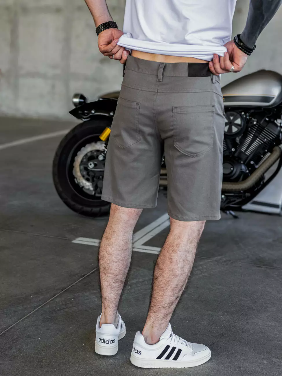 стрейчевой хлопковой ткани Cotton TWILL. Шорты на молнии с поясом
