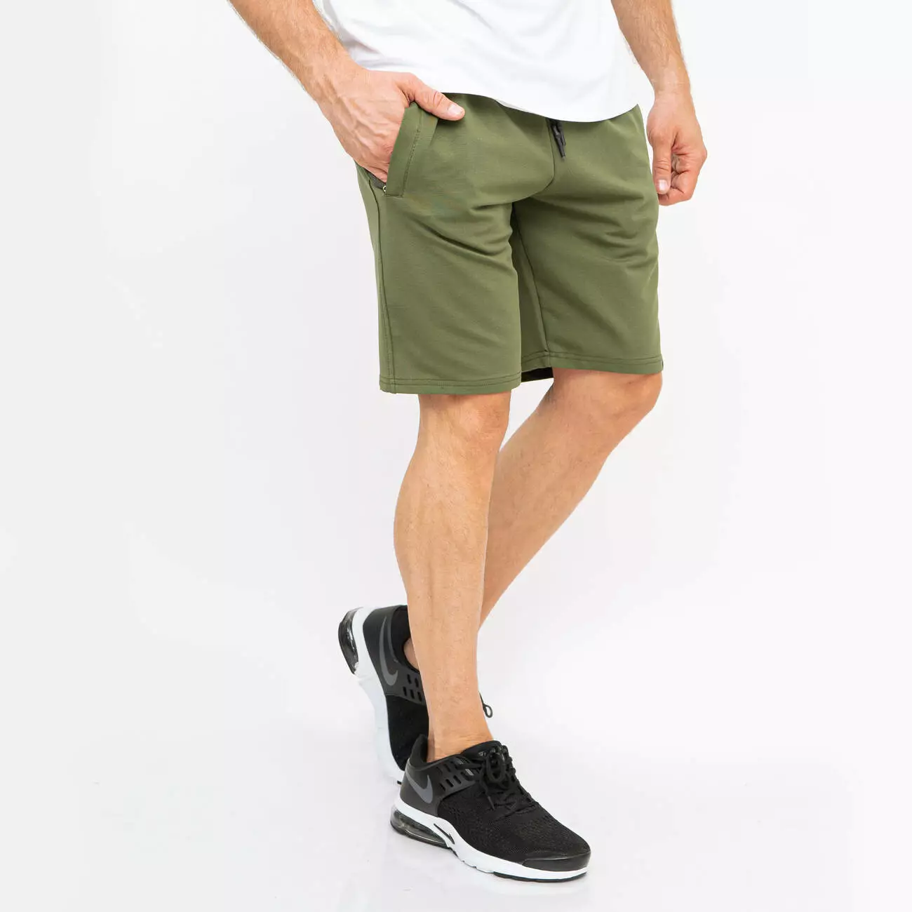 Классичексие однотонные шорты с удобными карманами на змейке, без