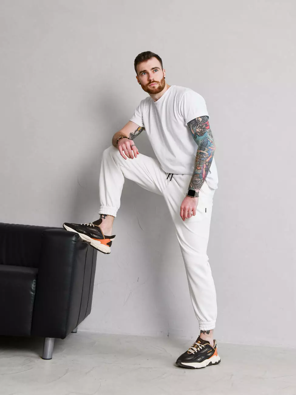 Мужские демисезонные спортивные штаны свободного кроя с манжетами