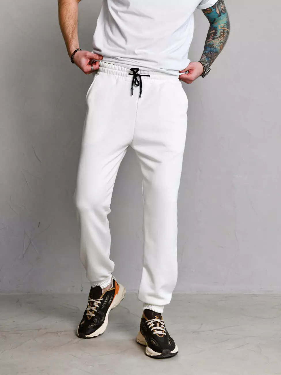 Мужские демисезонные спортивные штаны свободного кроя с манжетами