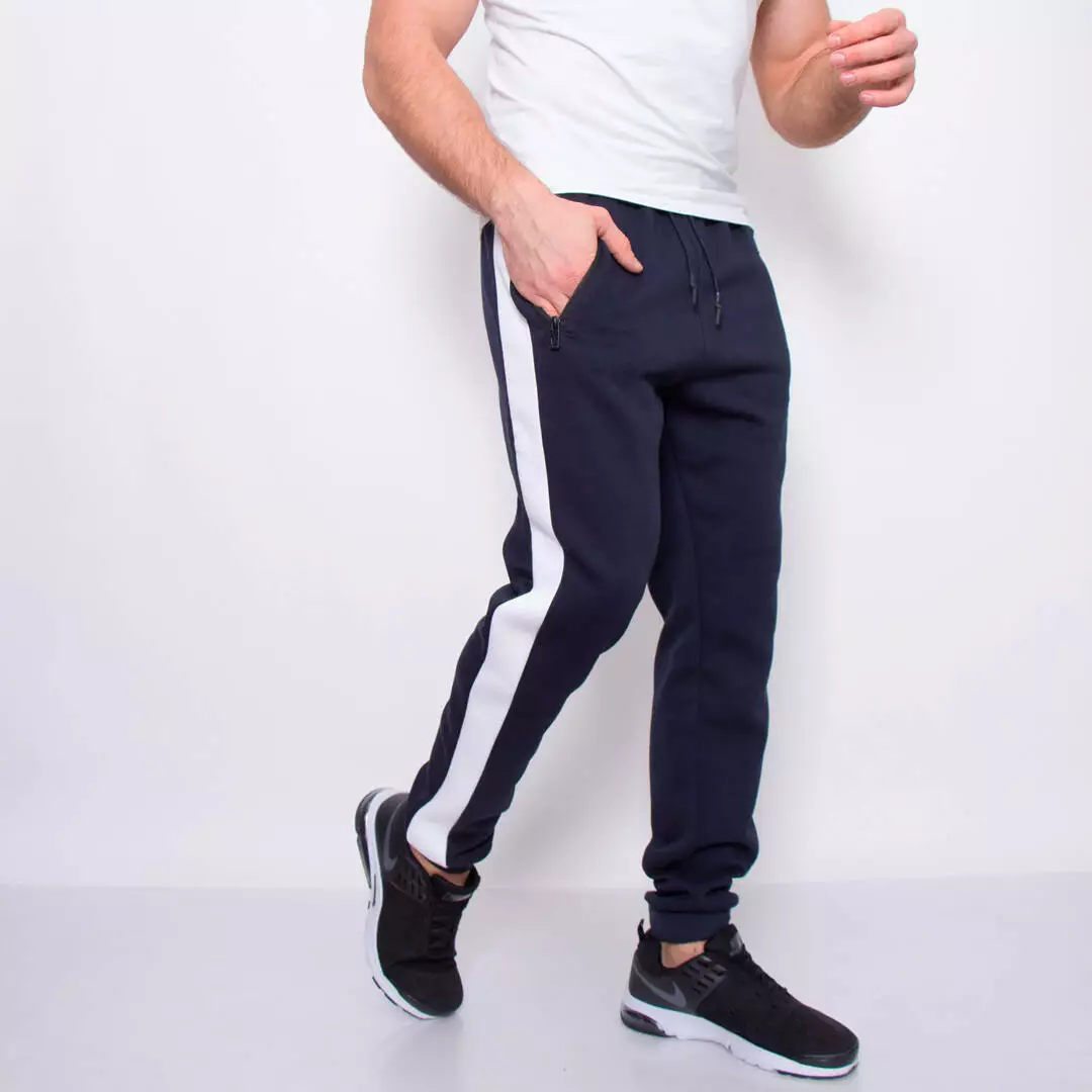 Спортивные штаны с контрастными лампасами, с поясом и манжетами на