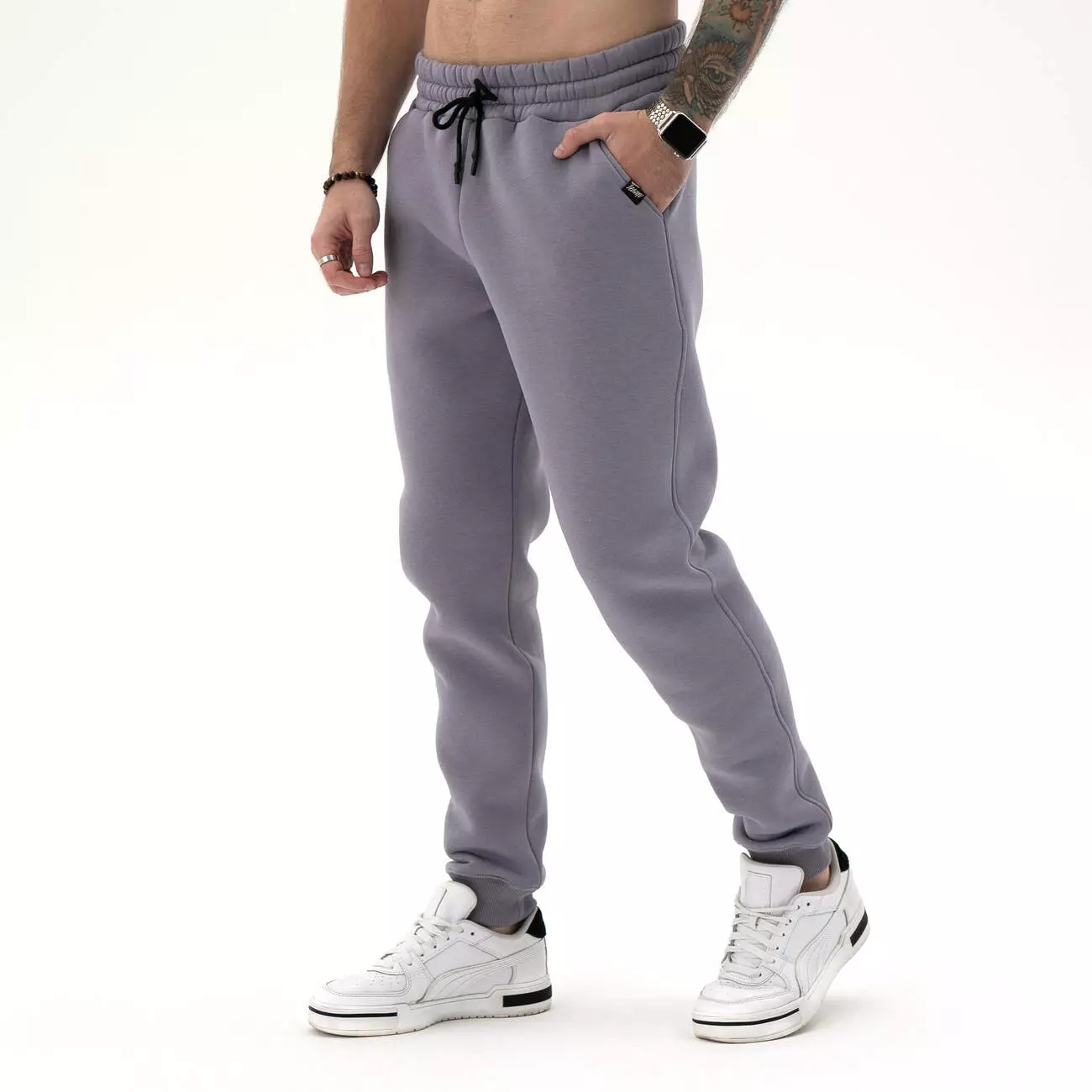 Мужские теплые спортивные штаны средней посадки с манжетами на