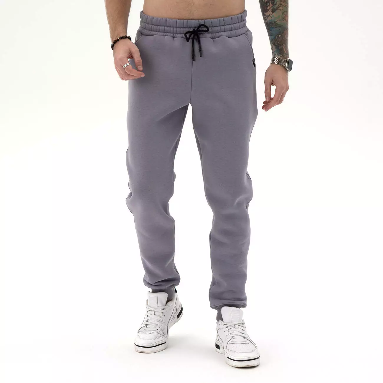 Мужские теплые спортивные штаны средней посадки с манжетами на