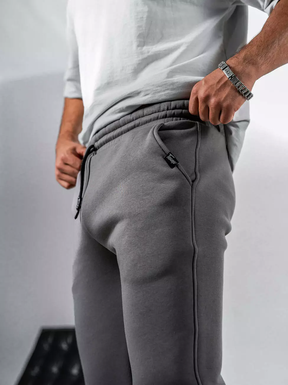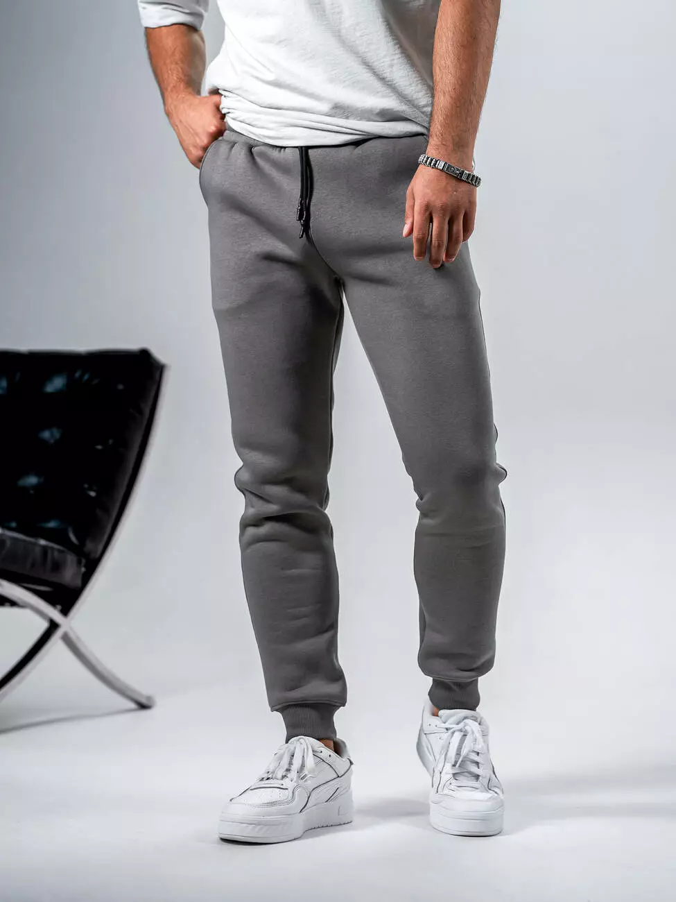 Мужские теплые спортивные штаны средней посадки с манжетами на