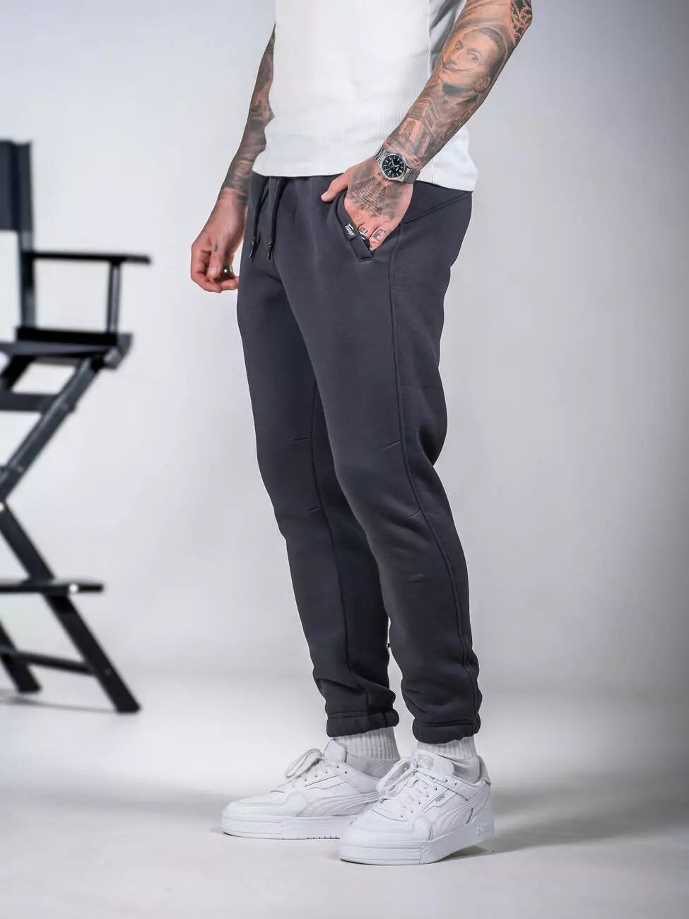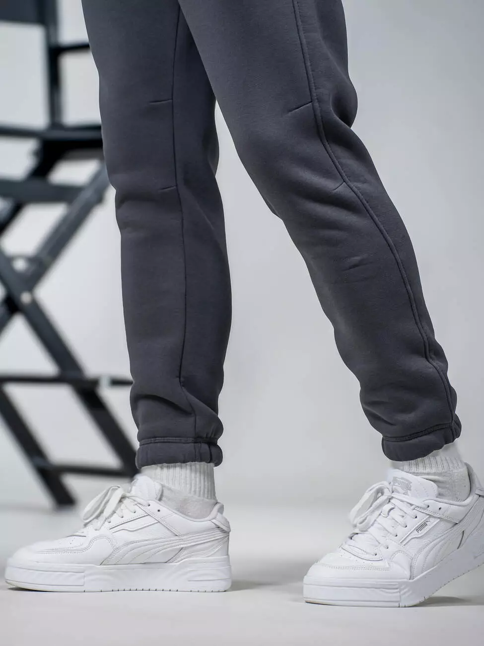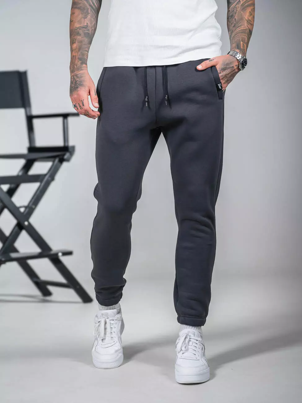 Мужские теплые спортивные штаны, зауженные книзу с подворотом на