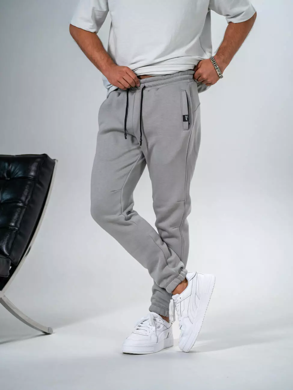 Мужские теплые спортивные штаны, зауженные книзу с подворотом на