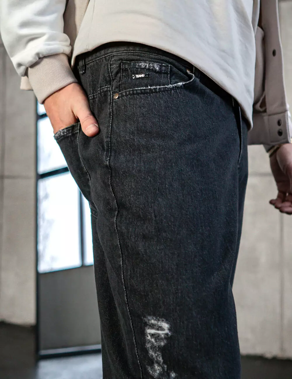 к низу, пояс на пуговице под ремень. Джинсы Украинского
