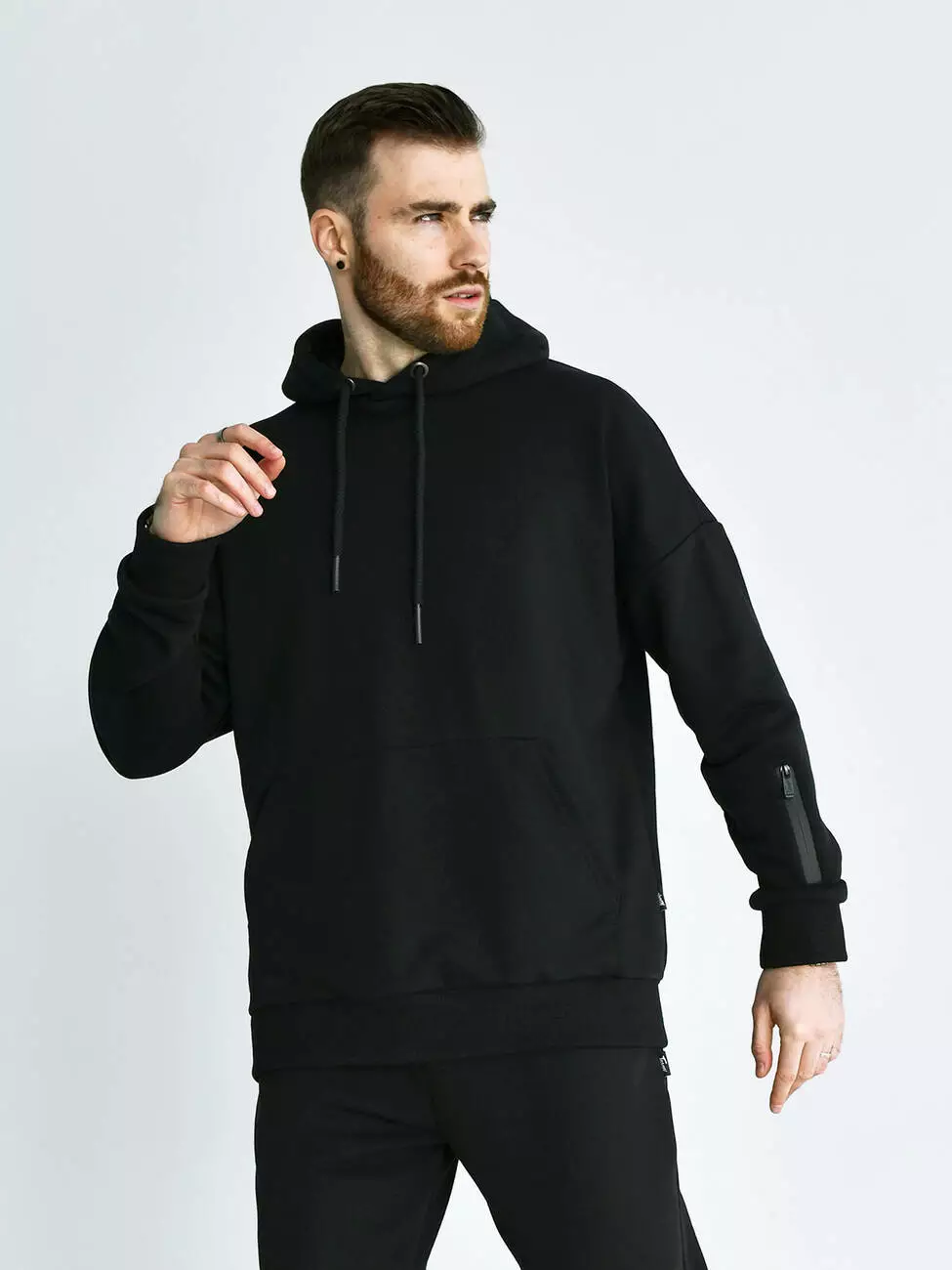 Мужской демисезонный Худи свободного кроя выполнен из премиального