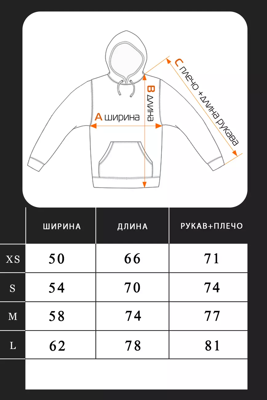 швом, глубоким капюшоном и карманом кенгуру. Манжеты и пояс из