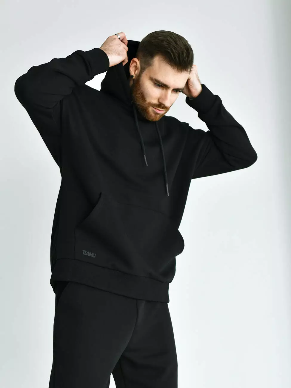 Мужской демисезонный Худи свободного кроя выполнен из премиального