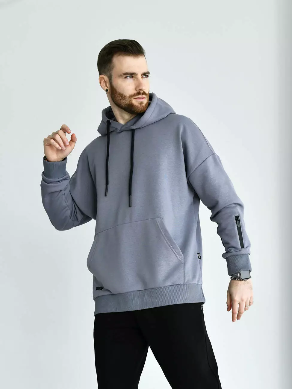 Мужской демисезонный Худи свободного кроя выполнен из премиального