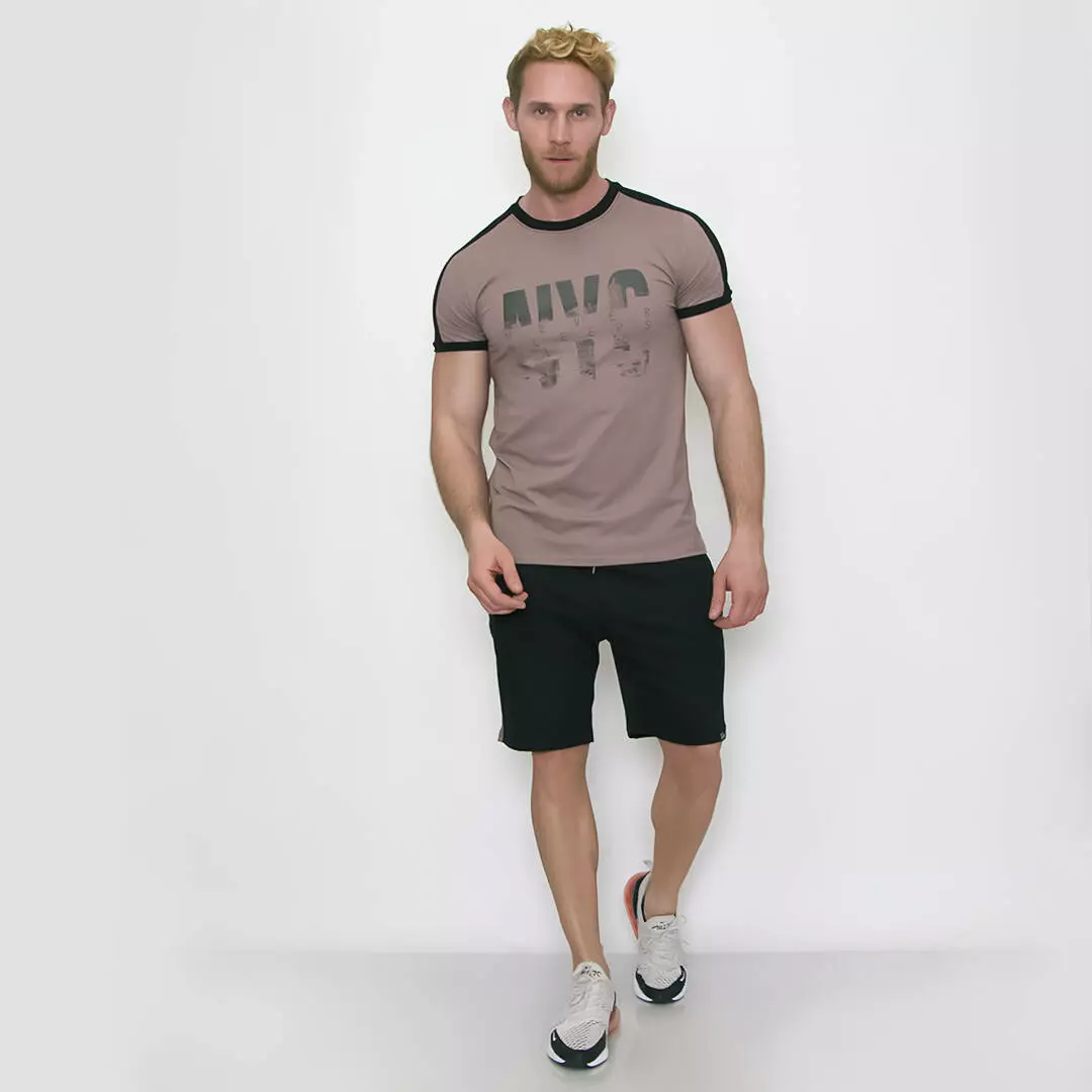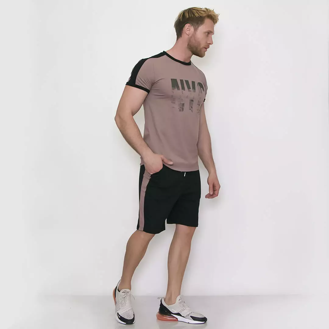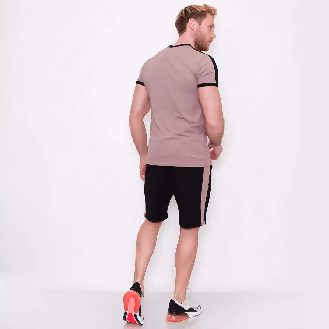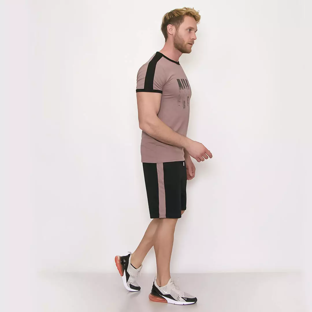 Костюм из шорт и футболки с контрастными лампасами и графическим
