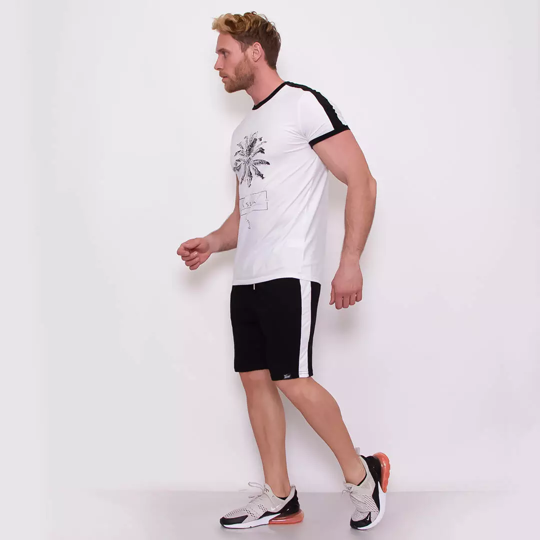 Костюм из шорт и футболки с контрастными лампасами и графическим