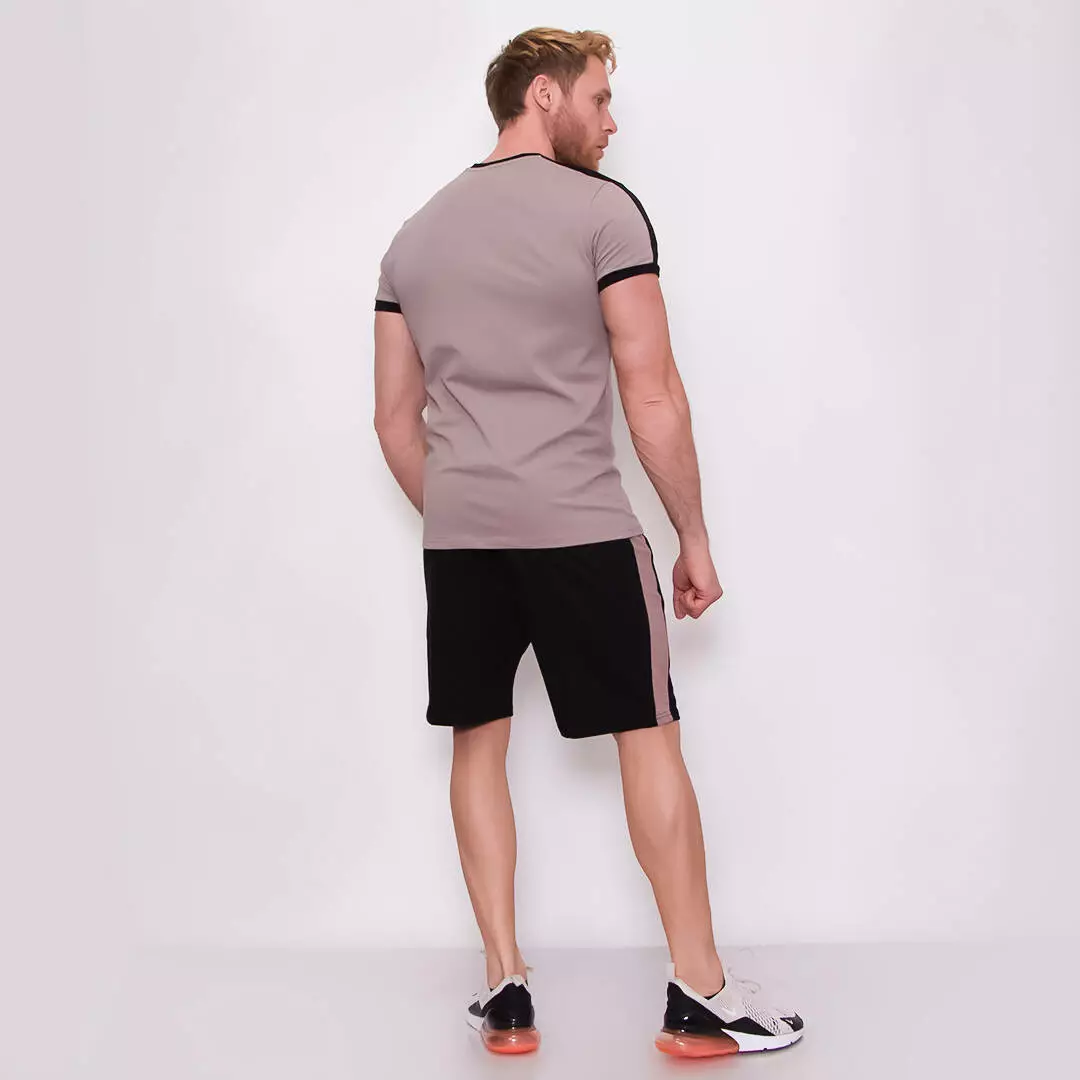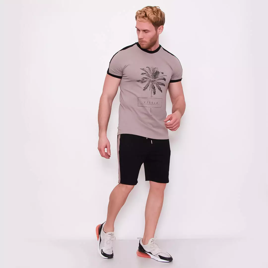 Костюм из шорт и футболки с контрастными лампасами и графическим