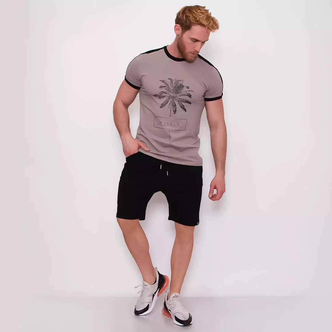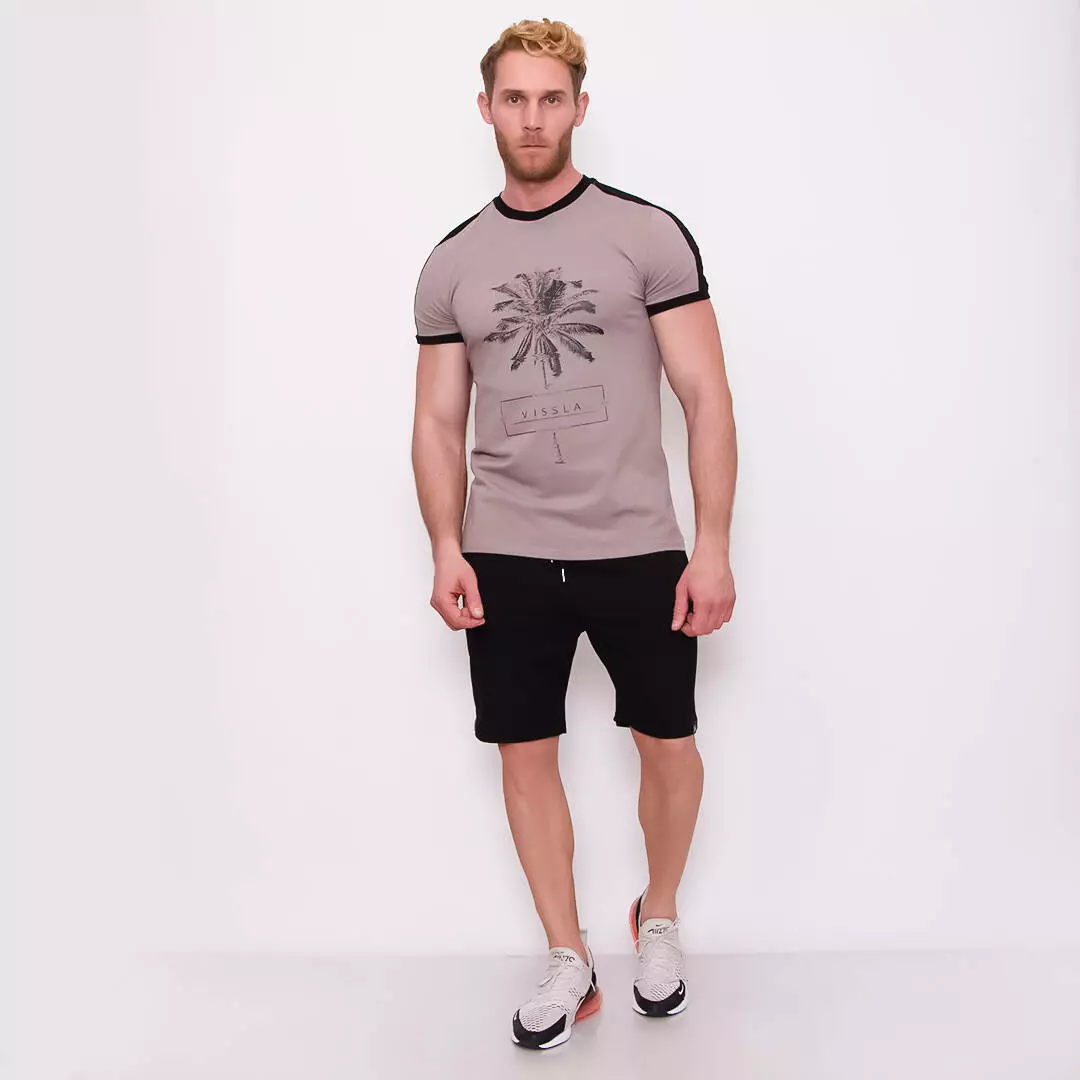 Костюм из шорт и футболки с контрастными лампасами и графическим