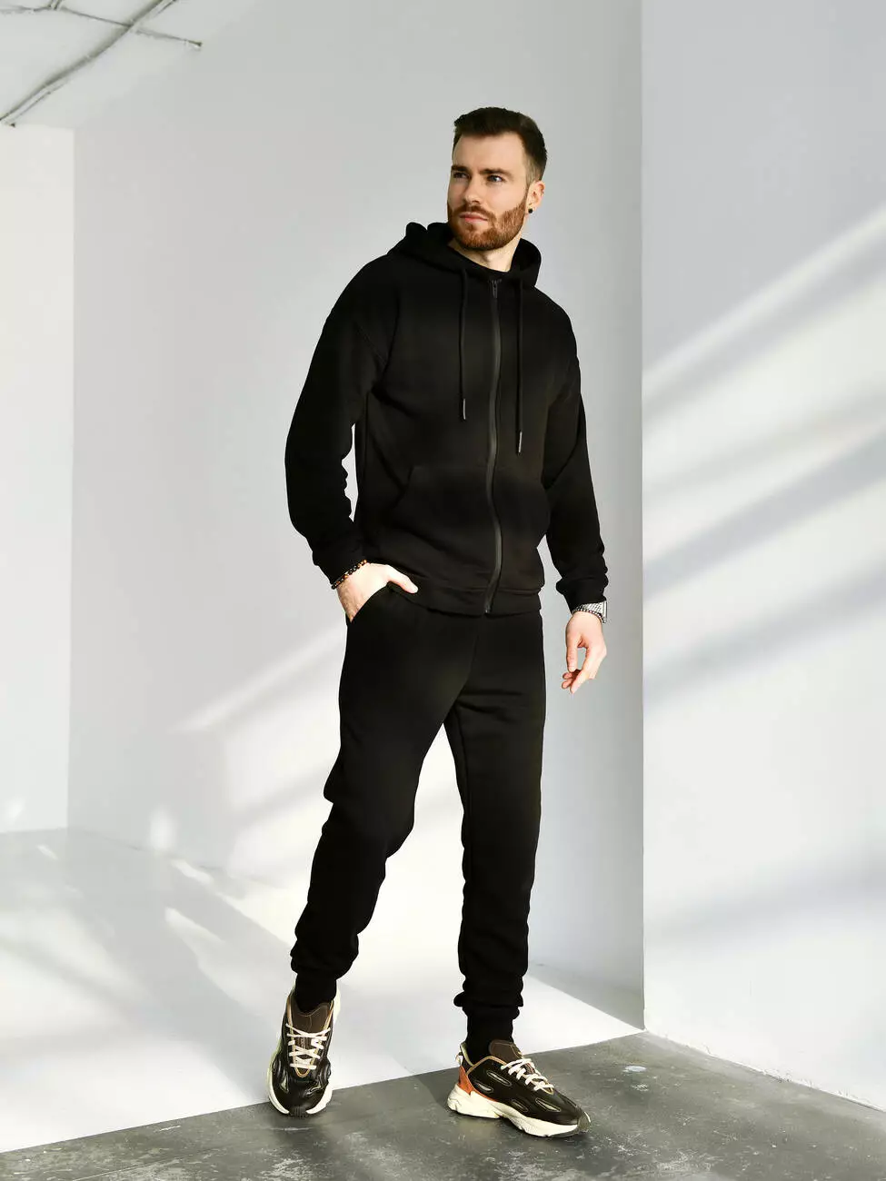 Мужской трикотажный спортивный костюм на молнии, выполнен из