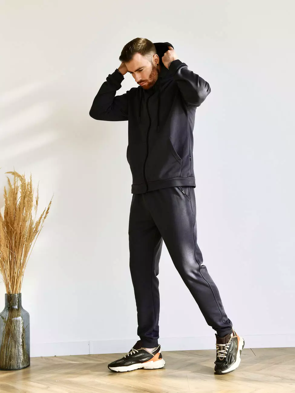 Мужской трикотажный спортивный костюм на молнии, выполнен из