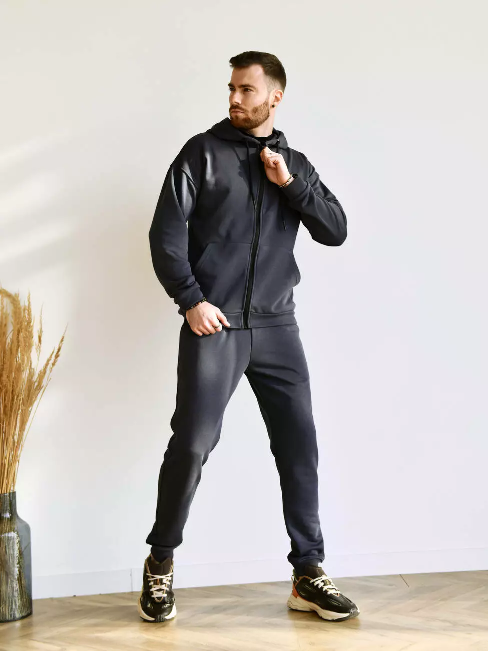 Мужской трикотажный спортивный костюм на молнии, выполнен из