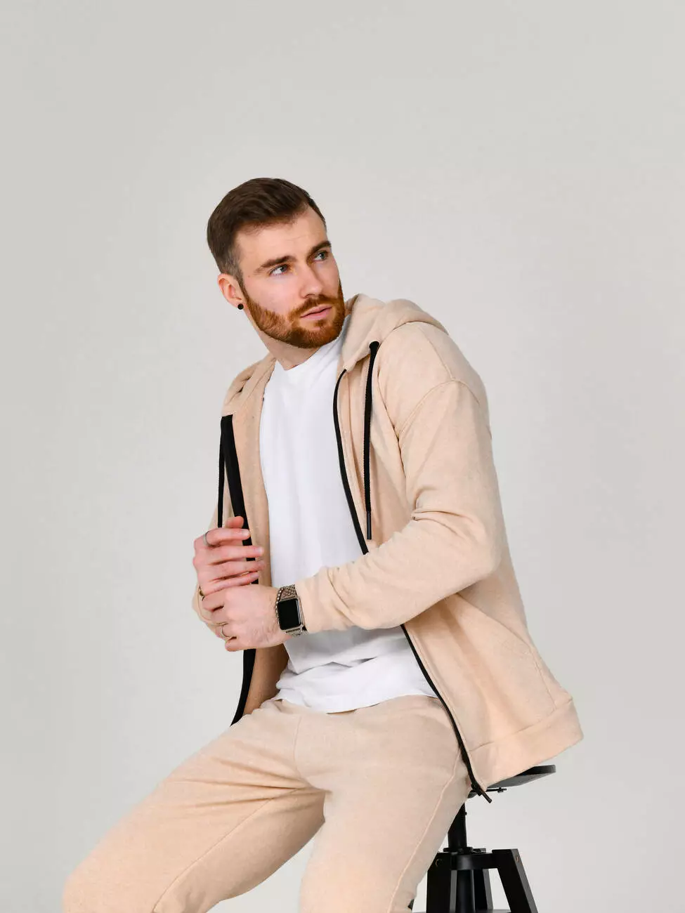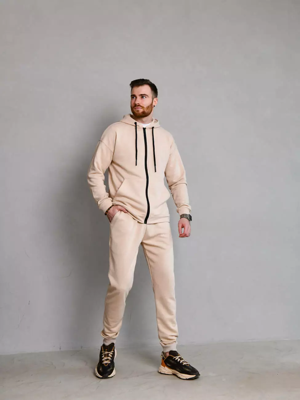 Мужской трикотажный спортивный костюм на молнии, выполнен из