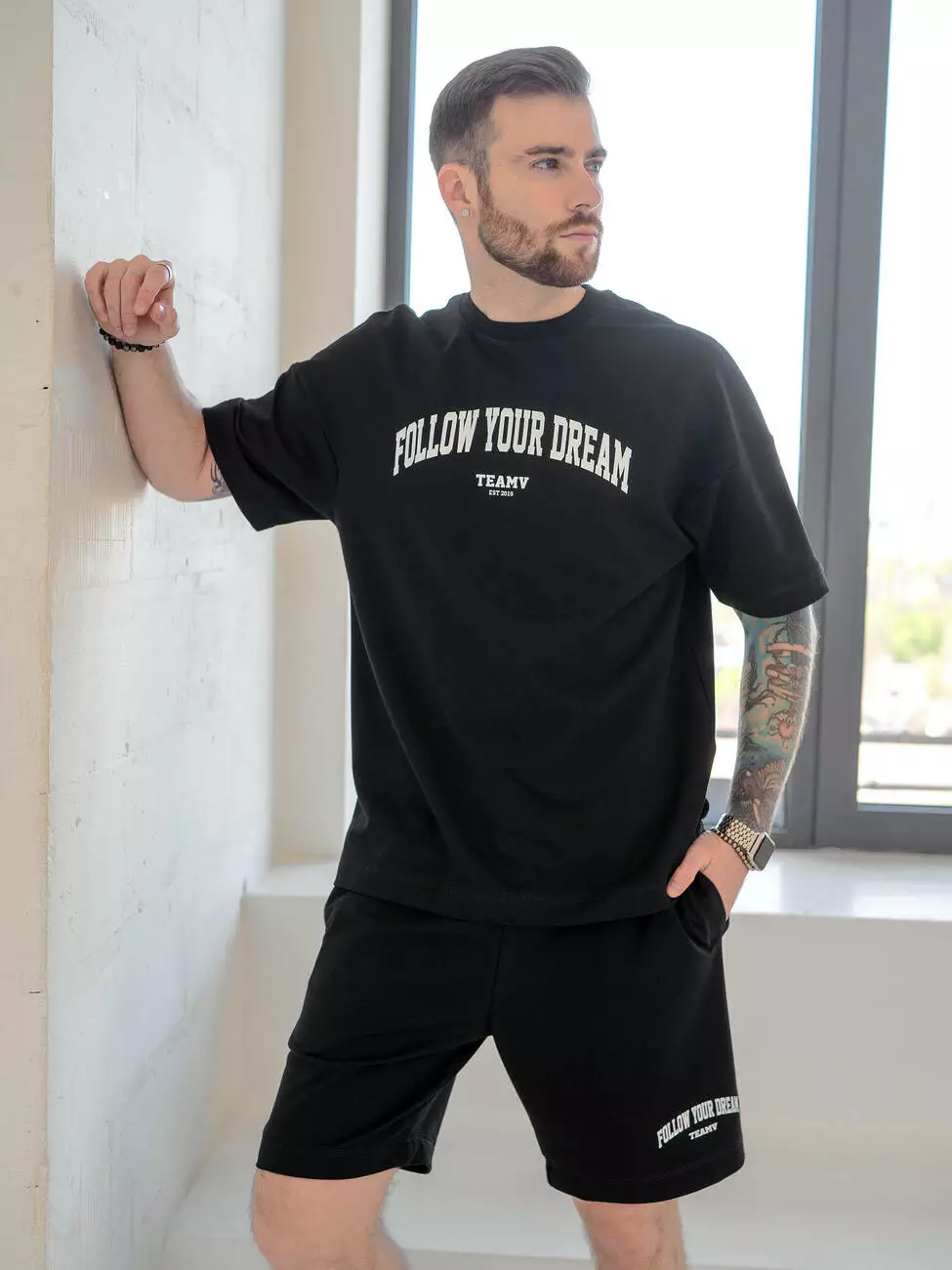 Мужской костюм на лето с брендированным принтом "FOLLOW YOUR